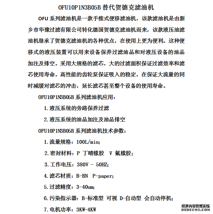 OFU10P1N3B05B替代賀德克濾油機