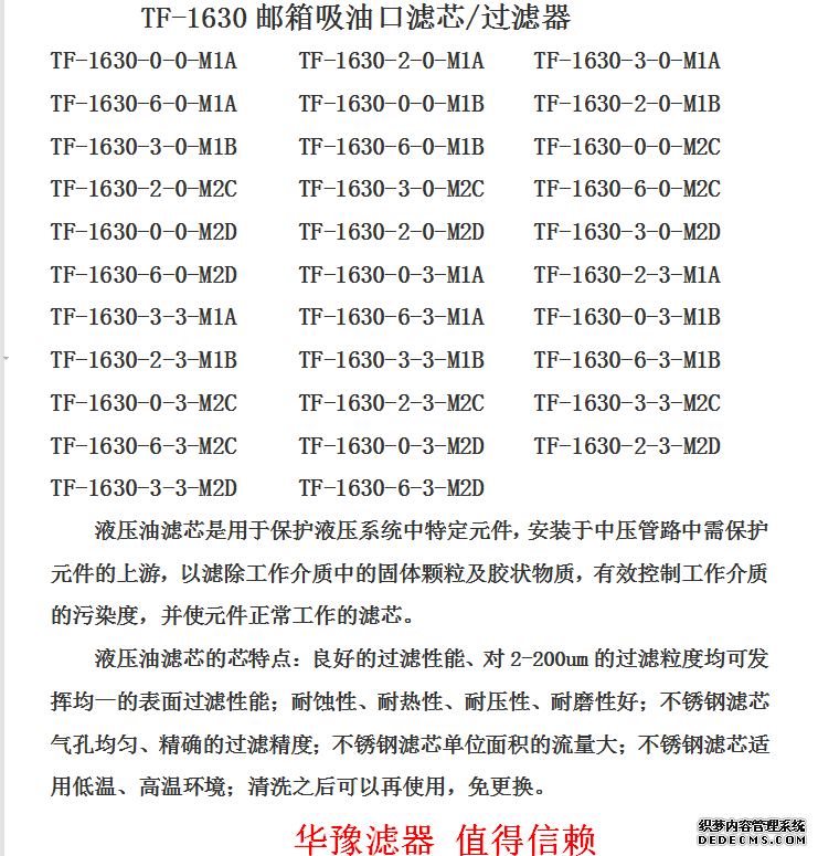 TF-1630 吸油口濾芯/過濾器